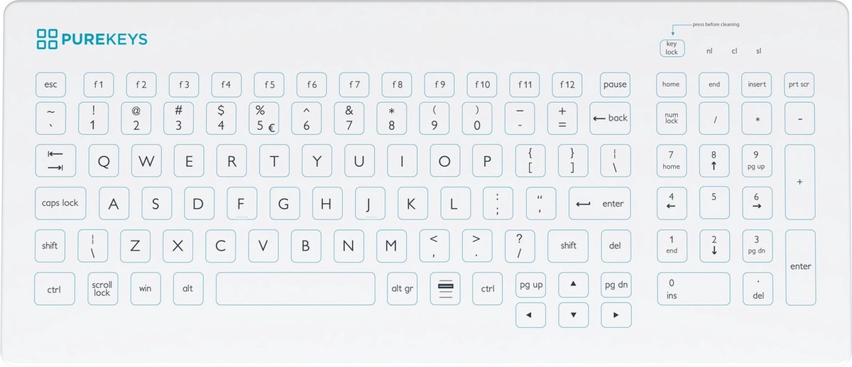 Purekeys compact draadloos medisch toetsenbord – hygiënisch en ergonomisch