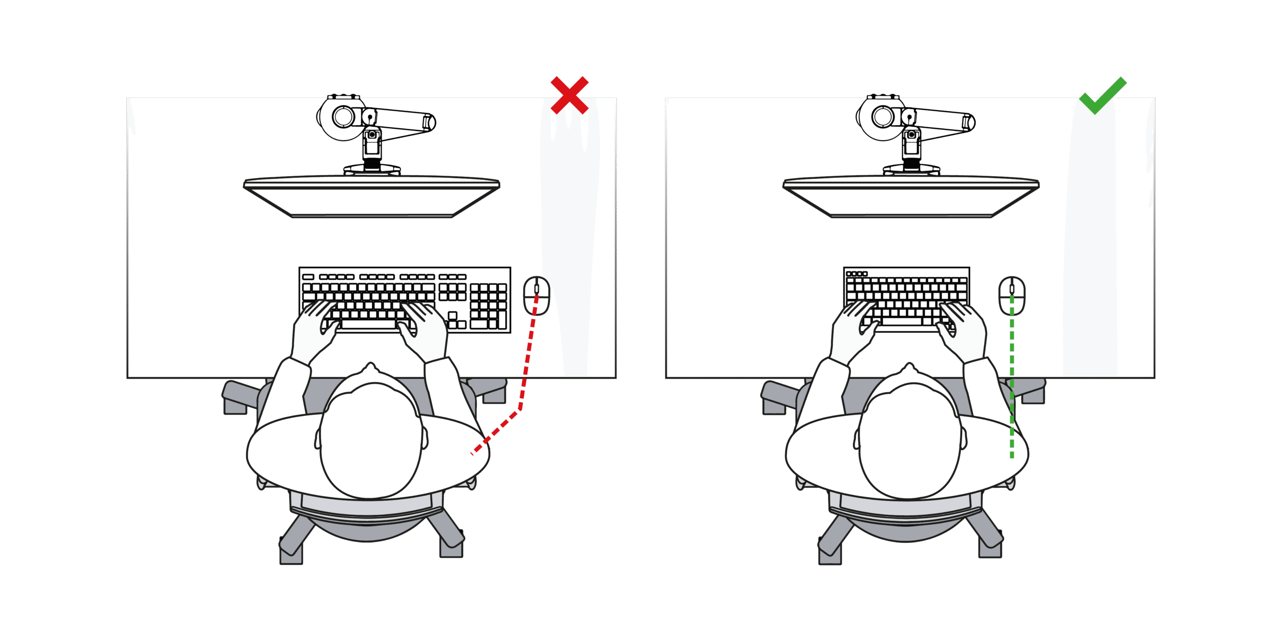 Doordat het numerieke gedeelte is weggelaten, hoef je minder te reiken naar de muis. Dit resulteert in een meer natuurlijke werkhouding met minder belasting van armen en schouders.